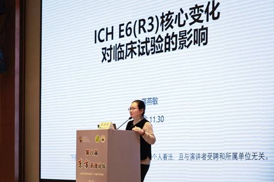 和铂医药副总裁蒋燕敏女士分享了ICH E6 (R3)的核心变化对临床试验的影响。她讲述了ICH GCP的修订历程、核心和关键理念、主要变化等,强调质量源于设计、风险相称性等原则。指出研究人员在研发格局演变的阶段,在最大限度地提高效率促进创新中,要始终确保试验参与者的保护和数据的可靠性,推动临床试验高质量发展。